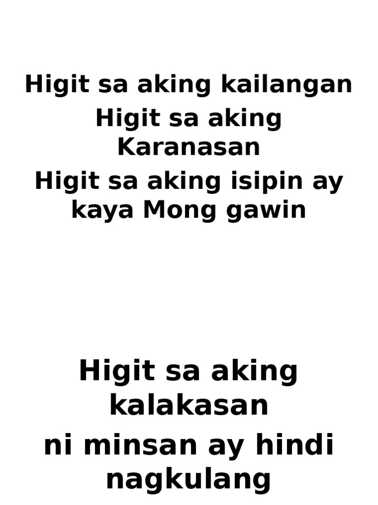 Higit sa lahat - malayang pilipino. Paulit-ulit nang nahulog ikaw na pala. Walang mahirap sayo Walang mahirap sayo Ikaw ang Panginoon na makapangyarihan Walang mahirap sayo.