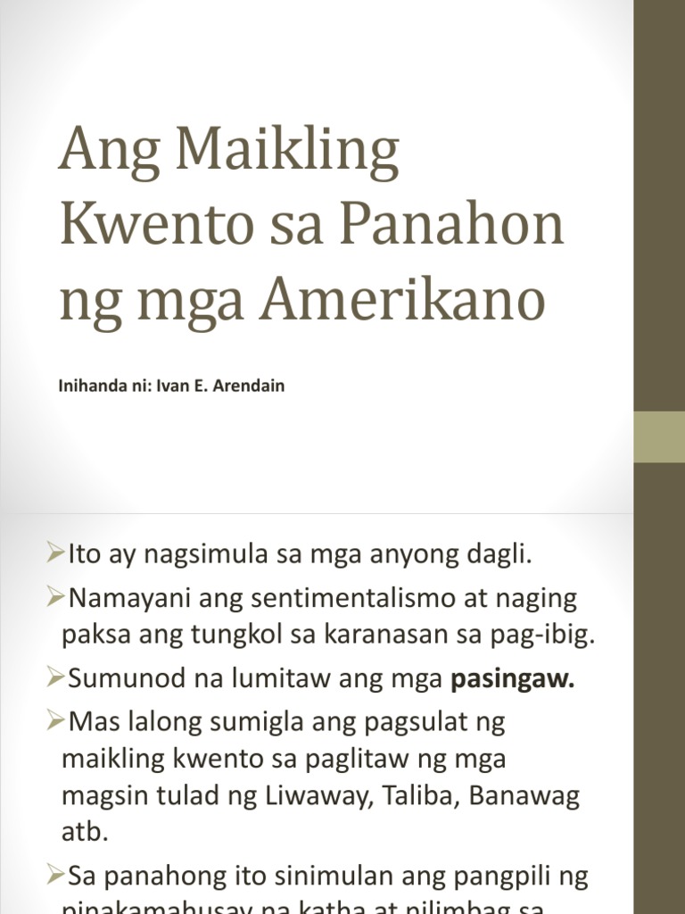 Ang Maikling Kwento Sa Panahon Ng Mga Amerikano