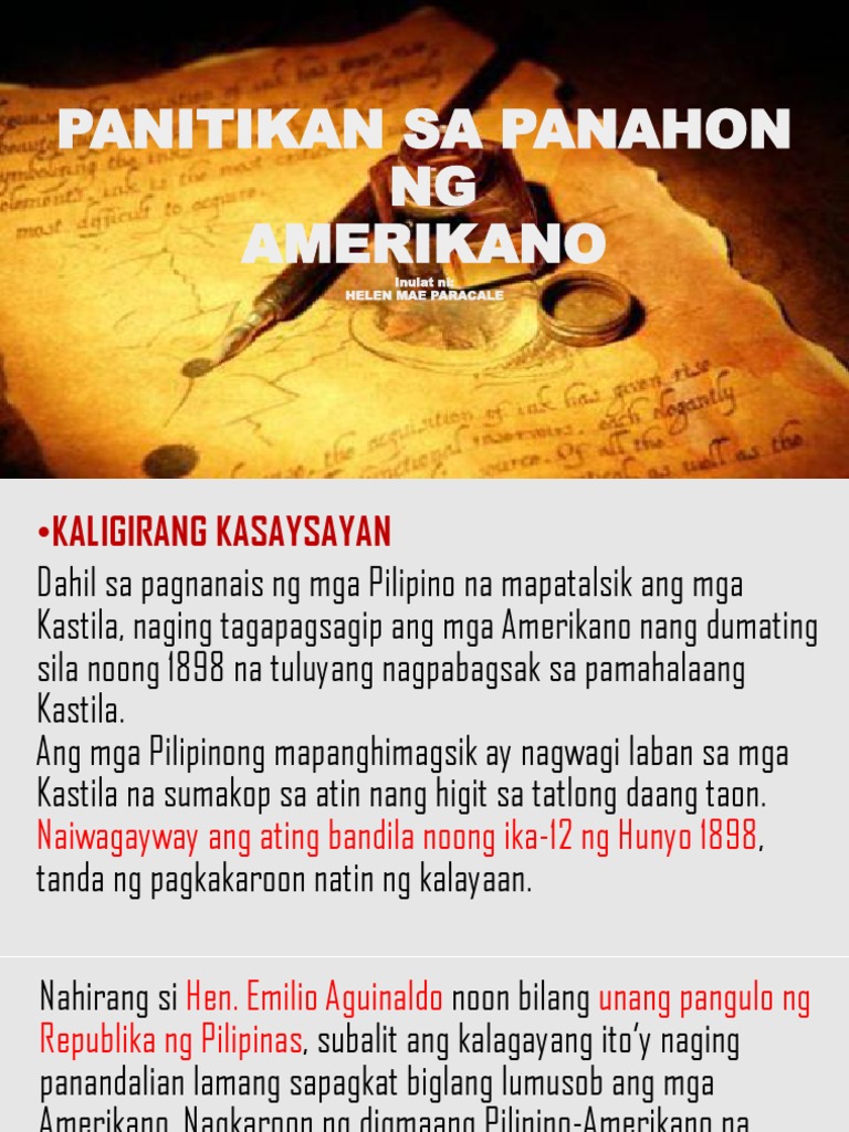 14092014 Ayon sa mga Amerikano ang mga patakarang pangkabuhayang kanilang inilunsad para sa kaunlaran ay isa pa ring paghahanda para raw sa diumanong nalalapit na pagsasarili ng mga Pilipino 3. Natatalakay ang kalagayang pangkalusugan ng mga Pilipino sa panahon ng mga Amerikano. Hango sa Ang Wikang Pang-Edukasyon Noong Panahong Amerikano Hanggang sa Kasalukuyan Nelly I.