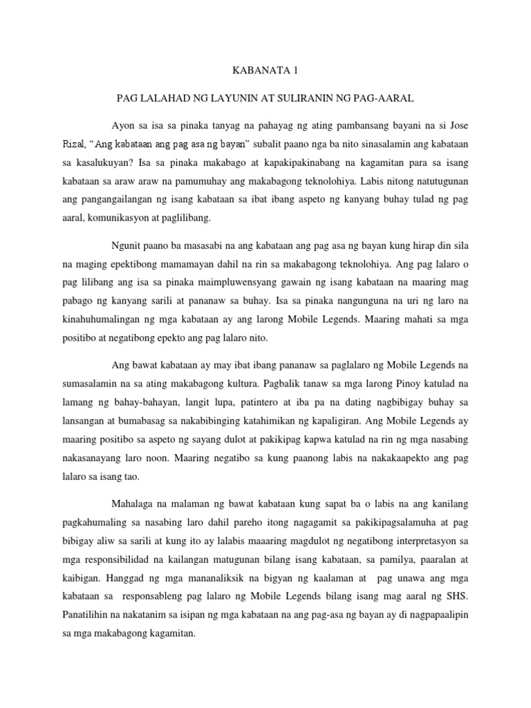Kapansin-pansin kasi sa mga mag-aaral ngayong kabataan ang hilig nila sa paglalaro ng Mobile Legends at nakikita ng mga mananaliksik ang ibat ibang epekto nito sa kanila sa pag-aaral kaya naman ninais ng mga mananaliksik na alamin ang epekto nito sa kanilang akademikong perpormans. Kung hindi ka magpipigil malululong ka talaga. 3042019 Ang paglalaro ng mga online games gaya ng Mobile Legends ay parang droga na kapag naabuso ay may masamang epekto.